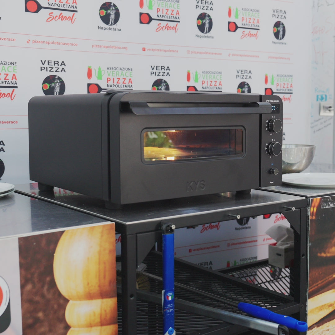 The KYS VERO 500 PRO recreates the explosive heat of a traditional wood-fired oven in a powerful electric format. With its unique Boost Function, precision control up to 500 °C, and an authentic Italian biscotto stone, it delivers fast bakes, perfect oven spring, and consistently authentic pizza — every time.