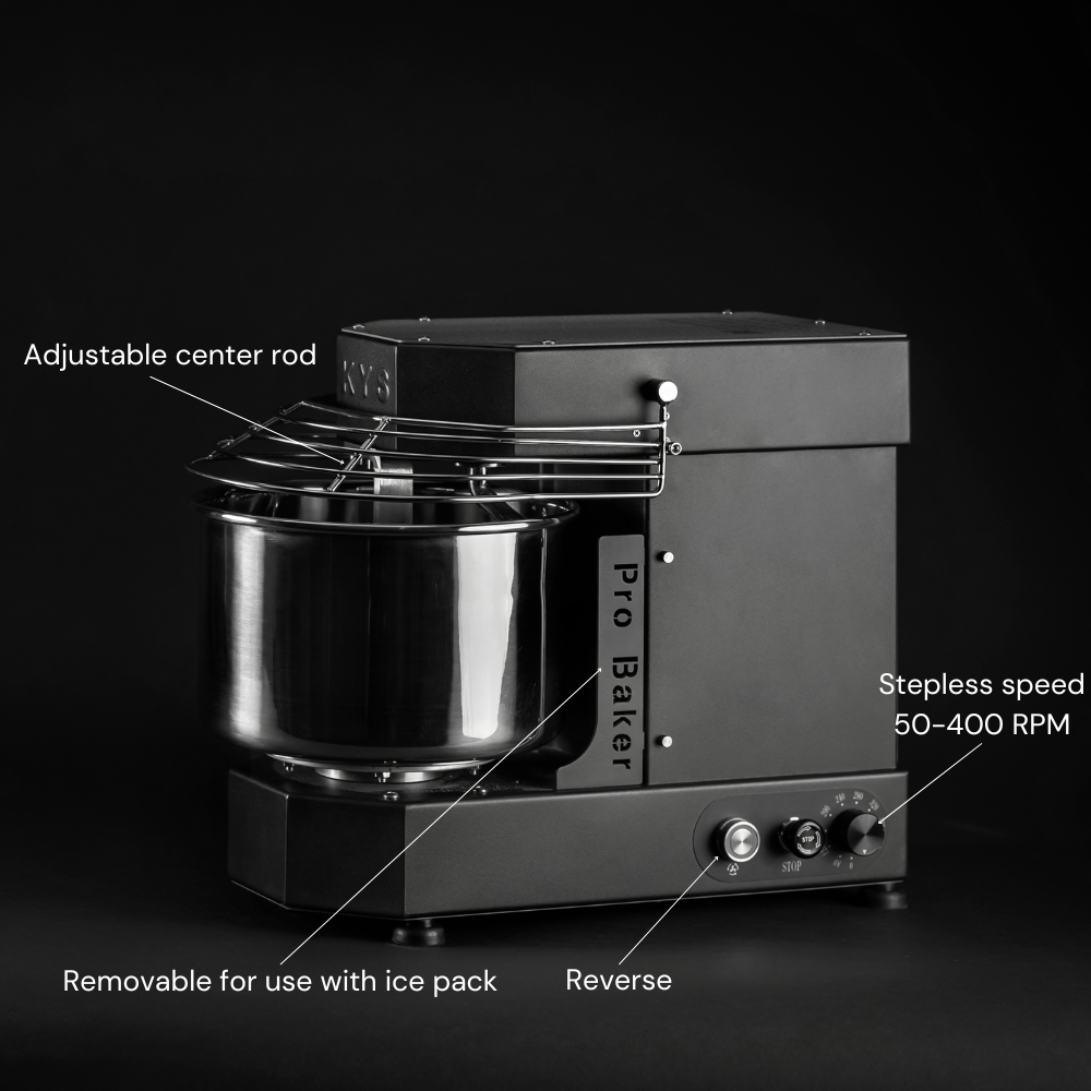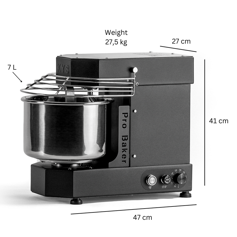KYS Pro Baker 7+ er designet og utviklet med fokus på brukervennlighet og lavt støynivå, og gir deg kraften til industrimaskiner på ditt eget kjøkken. Denne spiralmikseren er spesielt utviklet for privatmarkedet, og gir en sømløs overgang fra profesjonell ytelse til enkel hjemmebruk.