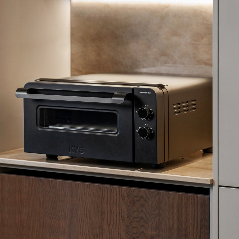 KYS VERO 450 is designed to fit seamlessly into your everyday life. Its compact size makes it easy to place both indoors and outdoors, without compromising the power needed for authentic stone-oven baking. With fast heating and stable performance, you can create everything from Neapolitan pizza to focaccia and other baked goods – whenever you want.