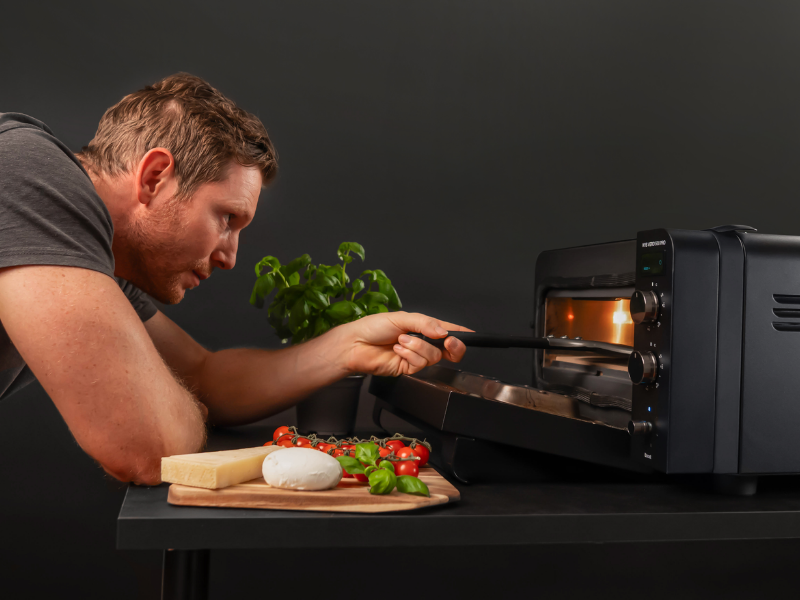 As the only pizza oven on the market with a boost function, it can recreate the explosive heat normally found only in a wood-fired oven. At temperatures reaching 500 °C, opening the door typically results in significant heat loss that impacts the outcome. By activating the boost function, intense radiant heat is released for up to 60 seconds, creating true shock temperatures that deliver the same unique effect as a traditional wood-fired pizza oven.