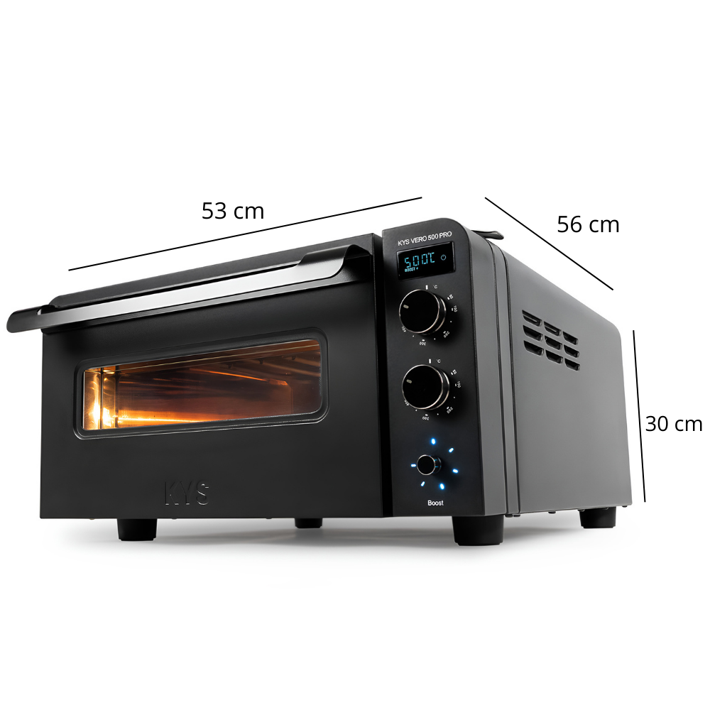 KYS VERO 500 PRO takes pizza ovens to an entirely new level. With groundbreaking technology, it is designed for those who demand the very best in quality and performance. Every detail has been carefully considered – from uncompromising construction and energy-efficient operation, to advanced heat insulation and a specially engineered door that minimizes heat loss and ensures even heat distribution.